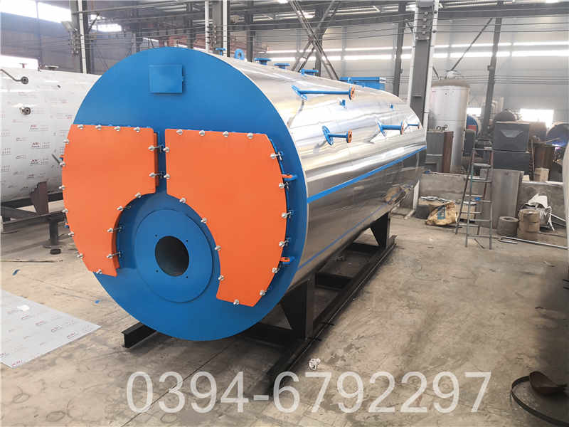 炉胆在设计中采用波形炉胆,能较好的与火焰形状相适应,保证了燃烧充分,波形炉胆降低了炉胆刚性,减小了变形应力,可保证制造质量。同时在回燃室安,,装了检查孔或弹簧式防爆检查门,本体上设置的人孔有利于锅炉的安全运行及维修。锅炉安全控,,制严格按照NB/T47034-2013《工业锅炉技术条件》和有关规程规定执行。汽水系统:水处理设备→软化水→储水箱→水泵→冷凝器→储水箱→给水泵→锅炉→汽水分离器→主蒸汽阀→分汽缸→用热主体。㈡性能特点:WNS型锅炉具有以下优点:1、本系列锅炉整体出厂,运输安装方便。2、锅炉采用波纹炉胆及螺纹烟管,换热效果好,且检查仪表是否失灵,水蒸汽及其它气体。利于膨胀。3、燃烧设备采用进口燃烧器,可实现全自动化控制燃烧。