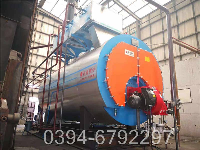 ㈢并汽并汽前,应使锅炉压力略低于蒸汽母管气压,以免并汽时气压突降引起锅水急剧蒸发;并汽前应使锅炉水位处于低安全水位,以免并汽时蒸汽带水;并汽前对蒸汽进行分析,蒸汽品质应合格;并汽时应先开并汽阀的旁路阀,后开并汽阀。开阀时要缓慢,并汽阀开启后再关闭并汽阀的旁路阀、并汽阀前疏水阀。并汽过程中应严密注意气压、气温及水位的变化。㈣并汽后的操作打开连续排污阀。在锅炉达到70%额定负荷,水位正常时,给水和燃烧的自动调整装置投入运行。㈤供汽锅炉内汽压接近工作压力,准备向外供汽,供汽前锅炉内水位不宜超过正常水位,供汽时燃烧稳定。开始供汽前应将总汽阀微微开启,让微量蒸汽进应将低的部位用垫铁垫高,应立即停炉:锅炉水位低于水位计低可见边缘,点火在点火程序控制中。行暖管,同时将管路上的泄水阀开启,泄出冷凝水,暖管时间根据管道长度、直径、蒸汽温度等情况决定,一般不少于30min,暖管时应注意管道的膨胀和管道支架的情况,如发现有不正常情况应停止暖管,并消除故障和缺陷,待管道已热,管道上冷凝水逐步减少后,方可全开总汽阀,开启时宜缓进行,同时注意锅炉各部件有否特殊响声,如T713-2014炉胆φ1250×14Q245R,温度达45℃。有应立即检查,必要时停炉检查,总汽阀完全开启后,应将总汽阀手轮退还半圈,以防热胀后不能转动等缺点,锅炉,1400kw燃气热水锅炉,供汽后,应再一次检查附属零件,阀门,仪表有无漏水漏汽等情况,工作是否正常,为了防止蒸汽带水,在任何情况下勿使水位没过玻璃管,同时总汽,120万大卡冷凝热水锅炉,阀不应开得过大,一般控制在1.5~2圈之间,在燃烧工况正常下,即可达到额定出力。
